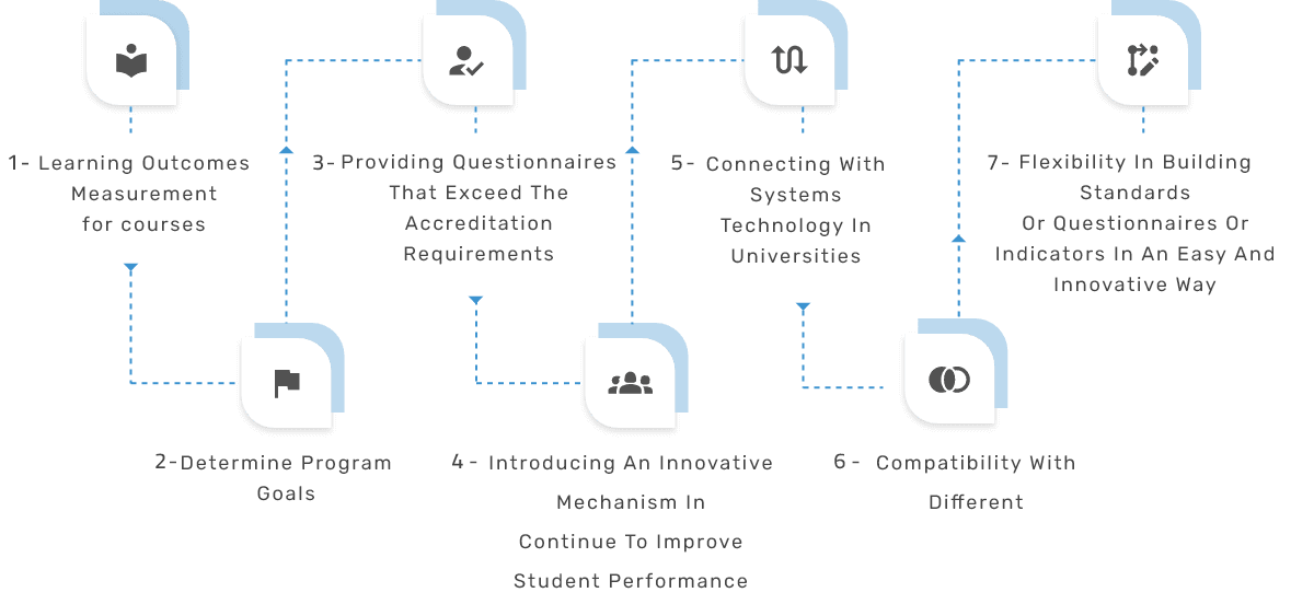 The Meyar Academic Accreditation System offers an innovative and advanced technological platform that monitors and measures learning outcomes, linking them to educational activities throughout the academic term — whether at the course or program level.Ultimately, this process delivers comprehensive and insightful reports across all aspects.Experts of the Meyar Accreditation System closely monitor the operations within these innovative systems, focusing primarily on enhancing learning outcomes. This approach is guided by a scientific methodology that ensures learning outcomes genuinely reflect what takes place inside the classroom, providing a clear and accurate picture of students’ continuous improvement.